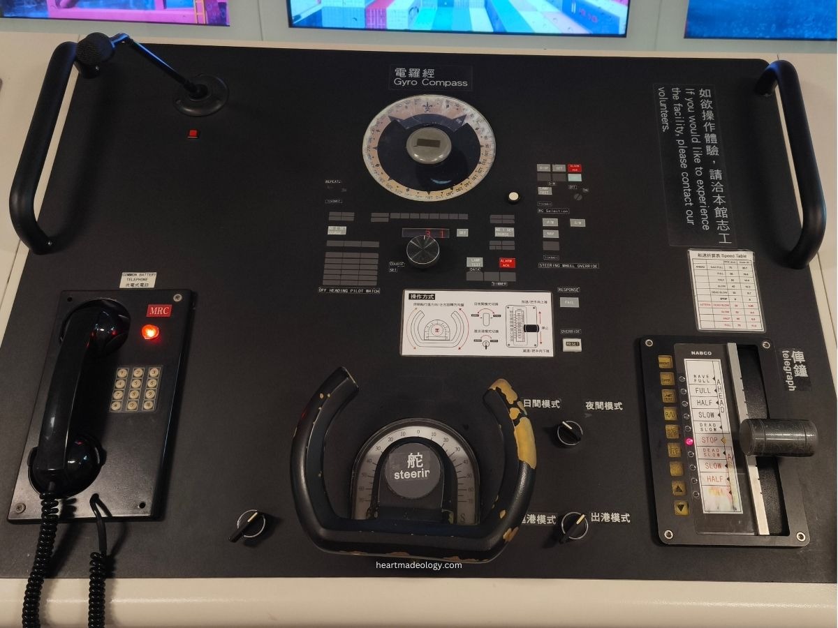 One of the highlights of the museum was an unexpected experience: test driving a cargo ship in a realistic simulator! There's a dedicated area where visitors can wear a full captain's uniform and step into a cargo ship simulation—complete with steering wheel, instruments, and portside visuals.