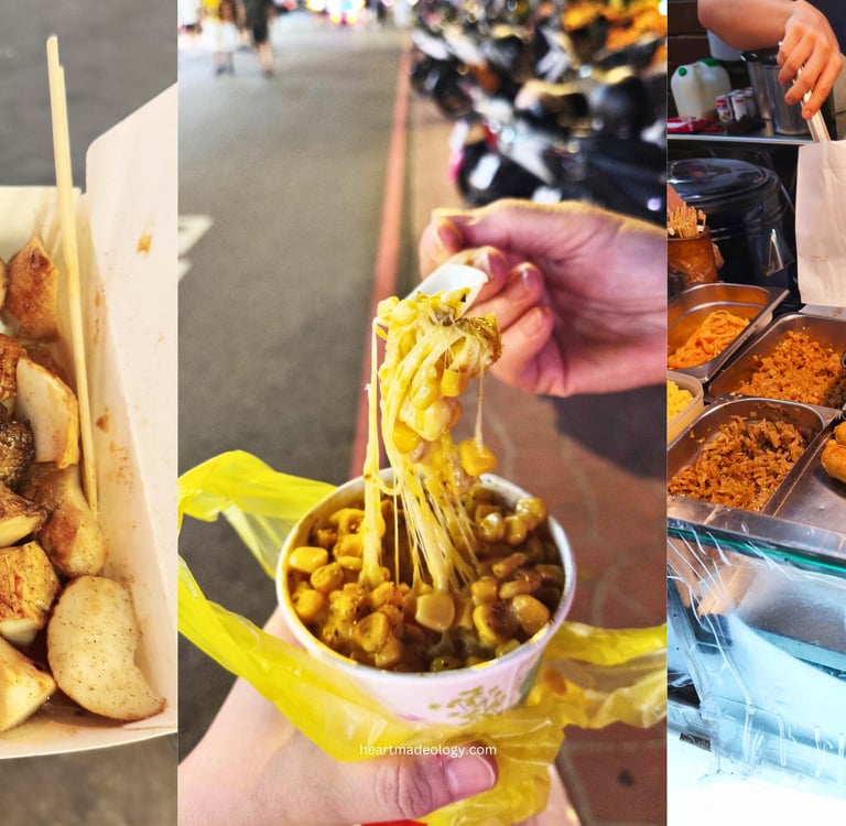 Fengjia Night Market in Taichung offers delicious street food like mozzarella cheese corn and peanut mochi, unique shopping finds like accessories and bag charms, and a lively atmosphere. It's a must-visit destination for food lovers, shopaholics, and anyone seeking an authentic cultural experience!